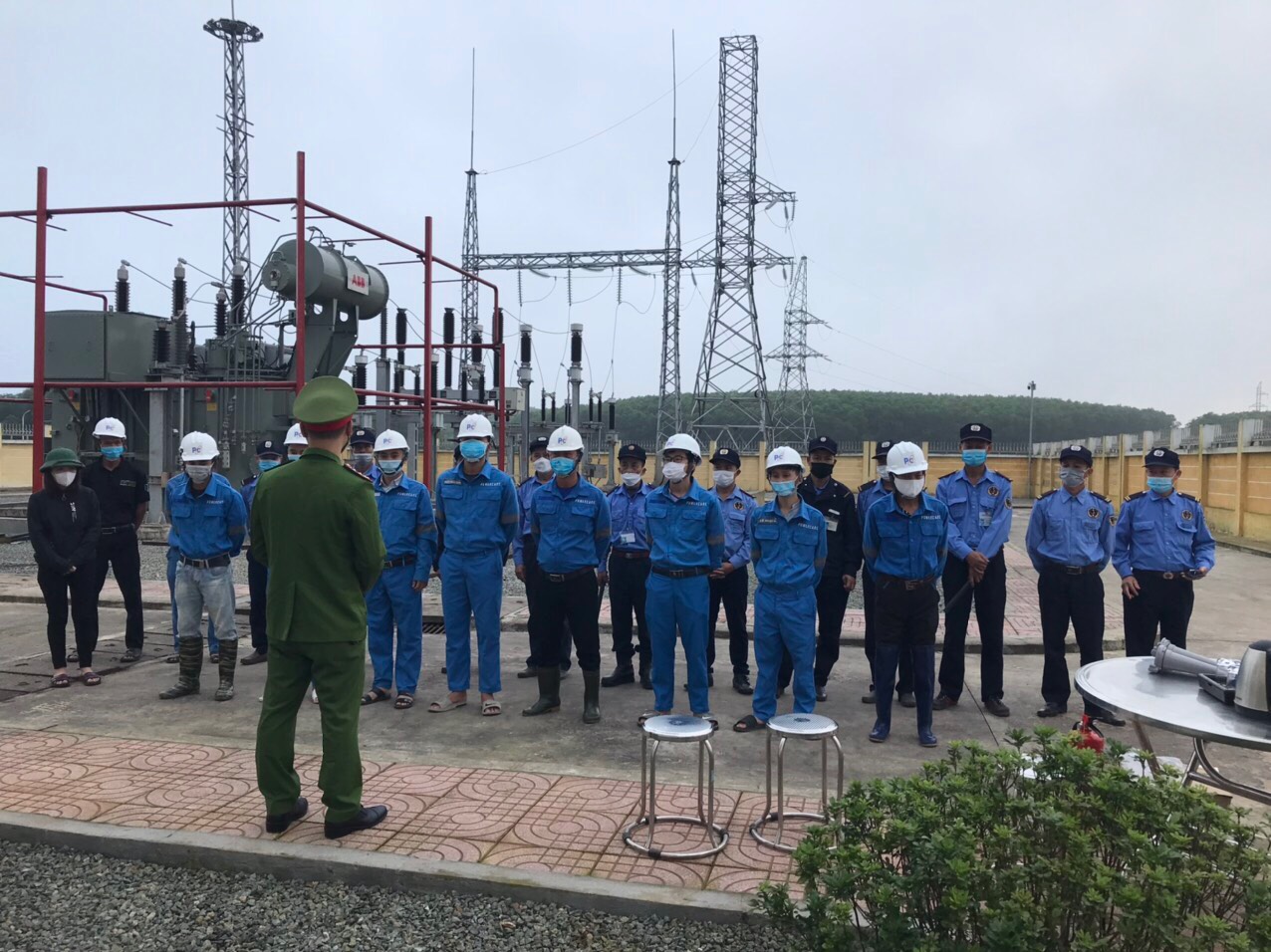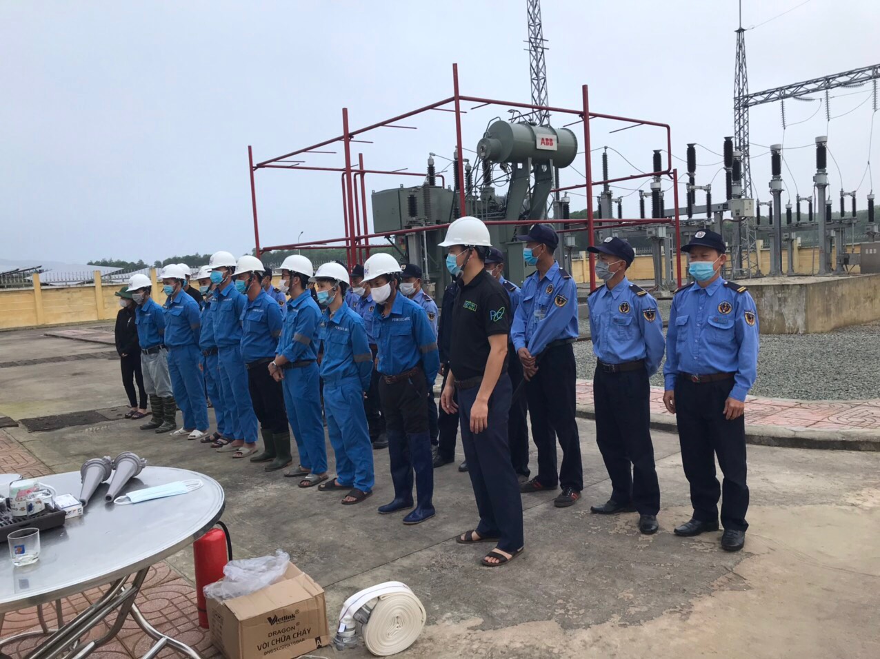 Cán bộ nhân viên nhà máy chụp ảnh tại Trạm biến áp 110kV